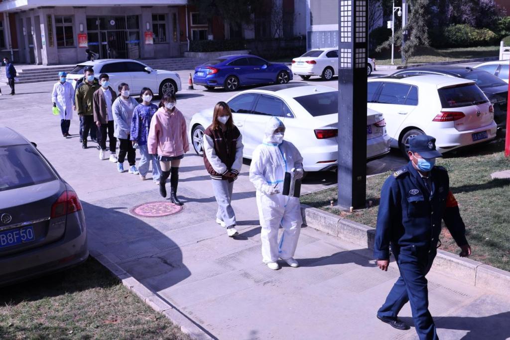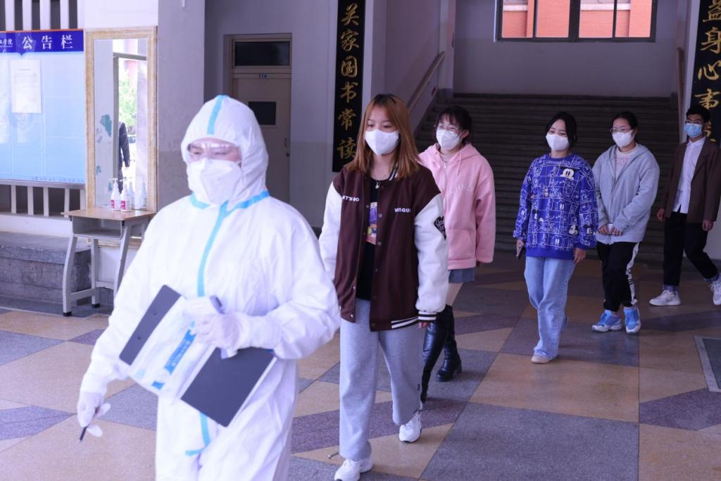 经校医初诊后判断该名同学符合疑似条件,由医疗保障组组长立即向龙锦社区疾控部门报告。同时,校医在保卫部门的配合下,带领该名同学及周围可能密接者到隔观室进行隔离观察,等待社区疾控部门人员到场。 在此期间,班主任向学生家长通报情况,安全维稳组在教室周边设置警戒区并维持秩序,学生工作组组织该名同学同桌、前后排同学和所在宿舍人员前往财欣楼隔观室等候观察,其余同学留在教室不得外出等待社区疾控部门现场意见。