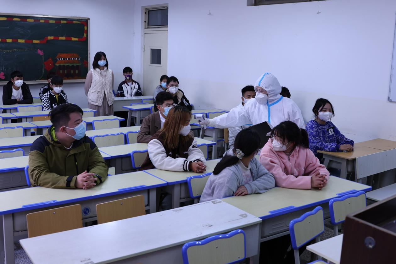 社区疾控部门到达现场后,医务保障组根据其要求进行现场消毒,并协助开展人员转运、隔离观察工作;学生工作组对该班学生进行密切接触者及病例排查后并向指挥部报告,全力做好学生的思想工作,关心他们的生活,特别要关心隔离留验和医学观察的师生的情况,适时开展师生心理疏导工作;宣传组密切关注涉及师生的思想动态及网络舆情,及时通过广播、校园网、公众号、大屏幕等平台进行信息发布、辟谣以及相关知识宣传,最大限度稳定师生情绪、消除不当言论影响;教务部门根据情况决定涉及班级后续教学方式,确保停课不停学。
