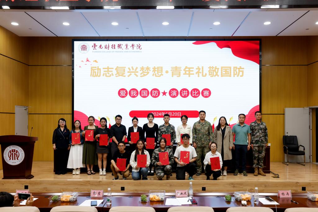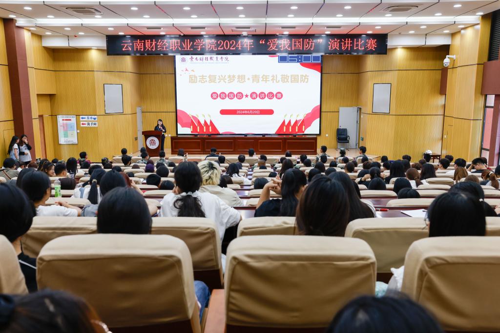 为热烈庆祝中华人民共和国成立75周年,深入学习贯彻落实习近平新时代中国特色社会主义思想和党的二十大精神,坚持用习近平强军思想引航新征程,进一步筑牢爱国强军的思想基础,培育崇军尚武的思想观念、居安思危的忧患意识和强国强军的责任担当,6月20日19:00,云南财经职业学院在龙泉校区图书馆学术报告厅组织开展2024年“爱我国防”演讲比赛决赛。