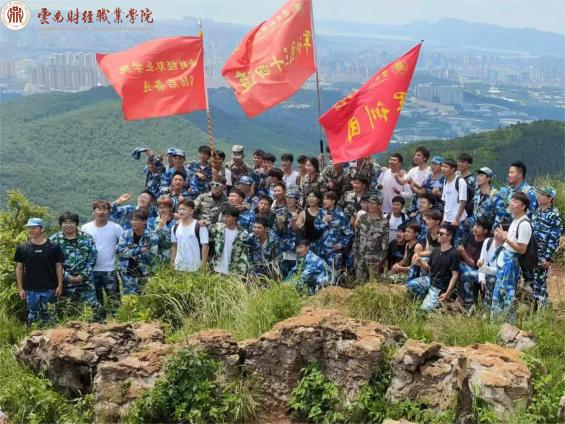 长虫山,海拔2345.8米,是大观楼长联里描述的“北走蜿蜒”,位于昆明北市区龙泉镇,山势绵延崎岖,怪石嶙峋的山脊仿佛一条石质巨蟒卧在群山之巅。山中植被茂密、风景秀丽,是登山探险的绝佳之地。20公里野外拉练,不仅是对身体素质的考验,更是对精神意志的洗礼,漫漫征途上,财职学子们用汗水与欢笑,共同书写青春最绚烂的篇章。