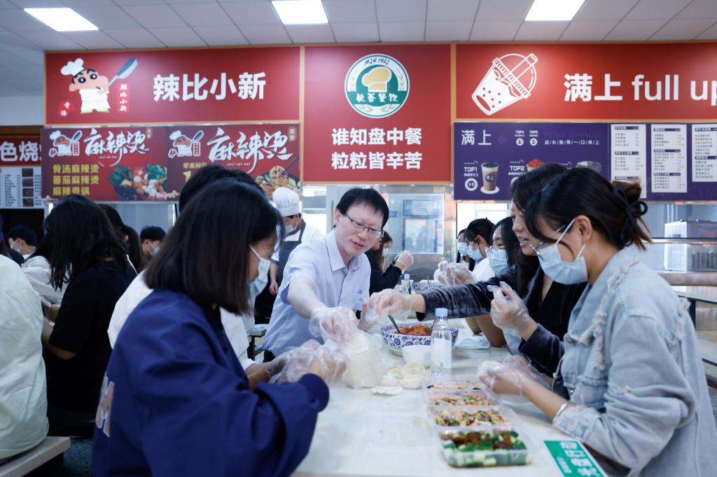 9月13日下午,校党委书记张金甫,校党委副书记、校长邹丽,党委副书记仲新来到学生三食堂,与学生代表欢庆中秋佳节,为师生们送去节日的问候和祝福。