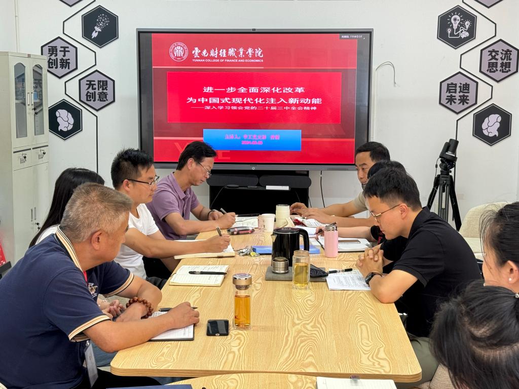 会上,学校党委副书记仲新以《进一步全面深化改革 为中国式现代化注入新动能——深入学习领会党的二十届三中全会精神》为主题,现场讲授主题党课,从深刻把握全会的重大意义和主题、深入学习领会习近平总书记关于全面深化改革的重要论述、进一步全面深化改革的总体思路与系统部署等方面对全会精神进行了系统解读和深入阐释,要求支部成员全面深入学习贯彻全会精神,坚持不懈用党的创新理论铸魂育人。