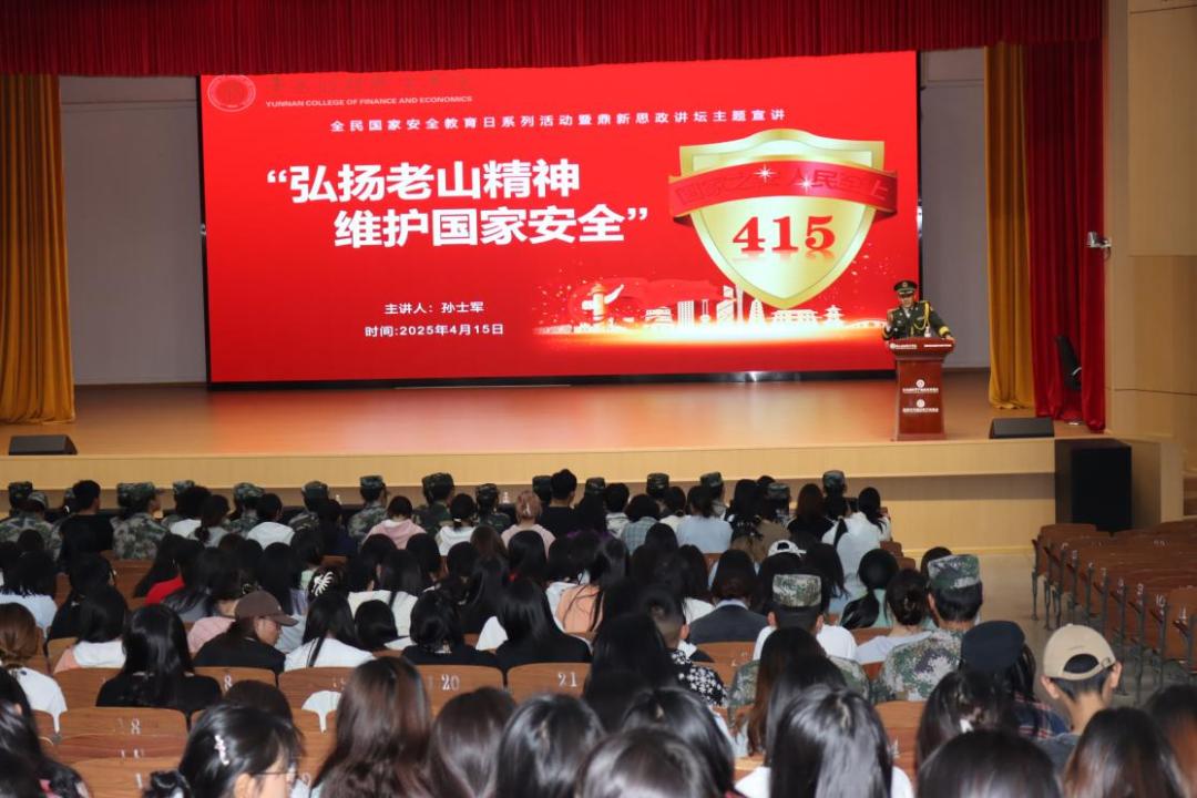 活动邀请原中共文山州马关县委常委、马关县人民武装部政委孙士军同志作“弘扬老山精神 维护国家安全”主题报告。孙士军结合当前国际形势与典型案例,运用大量详实的数据和生动的英模事迹,阐释了总体国家安全观的内涵。就"如何应对传统安全威胁与非传统安全风险""大学生如何践行国家安全观"等问题展开互动交流。