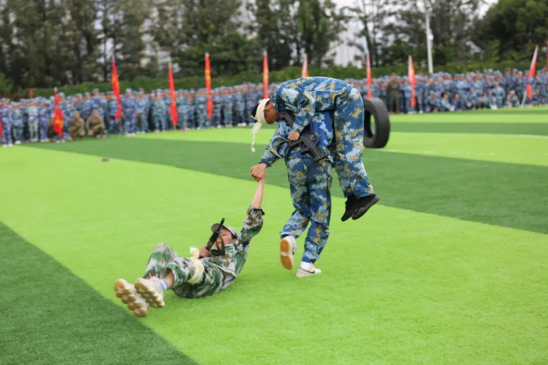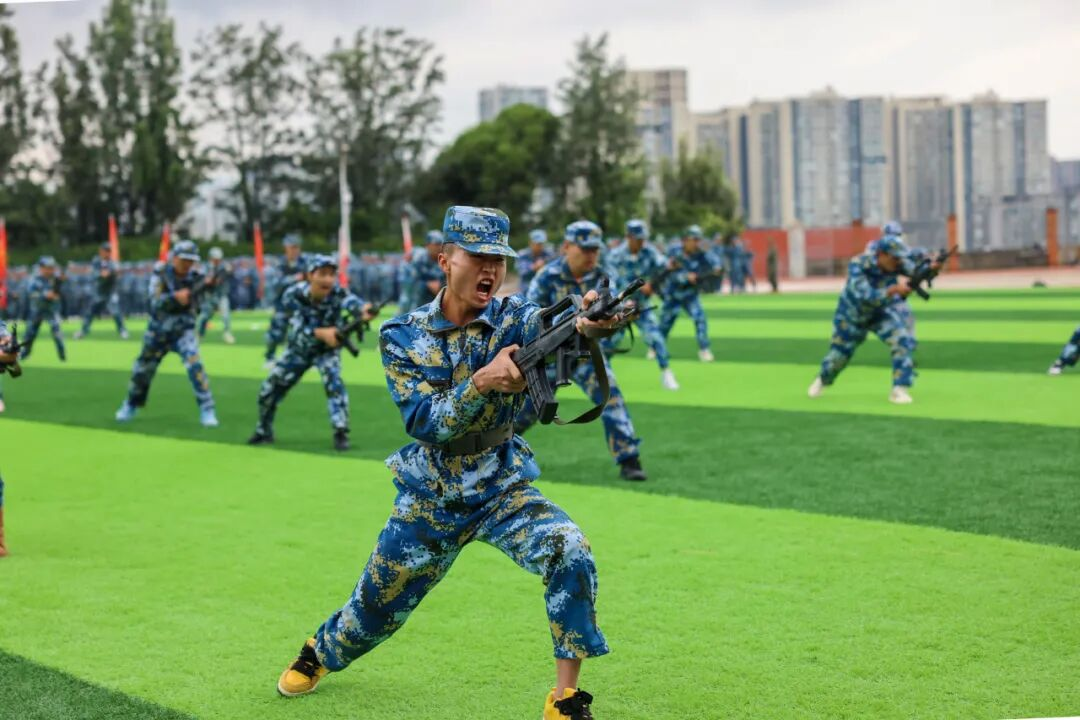 大会在庄严的国歌声中拉开帷幕。龙泉校区与大观校区田径场上,同学们军姿挺拔、精神抖擞,依次进行训练科目展示,动作整齐划一、口号铿锵有力,展现出良好的军事素养和昂扬的精神风貌。