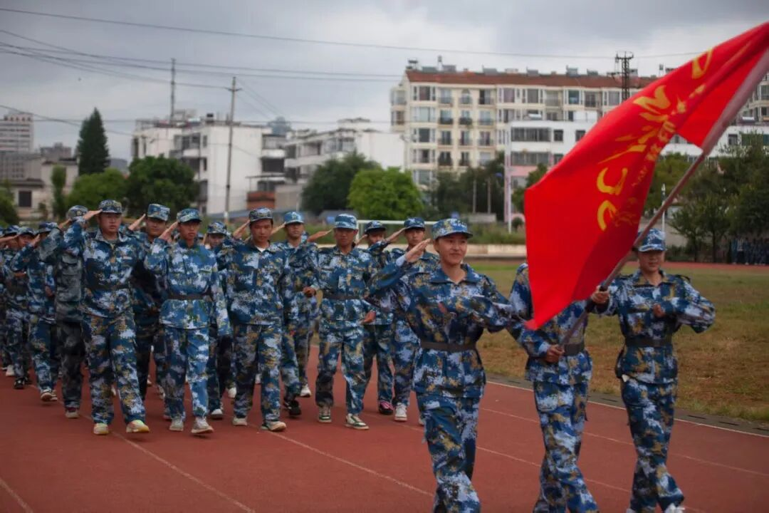 校领导宣读军训表彰文件,对在军训中表现突出的集体和个人予以表彰,并勉励同学们将军训中锤炼的意志品质和纪律意识延续到今后的学习生活中。