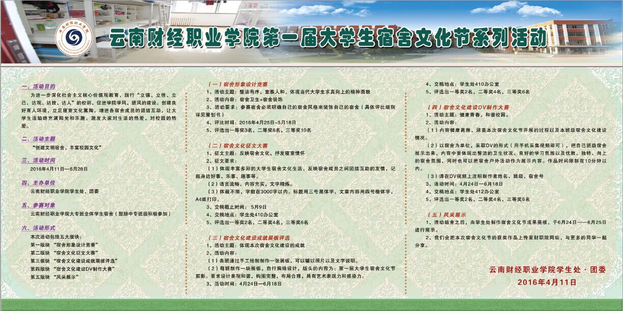 云南财经职业学院第一届大学生宿舍文化节活动方案