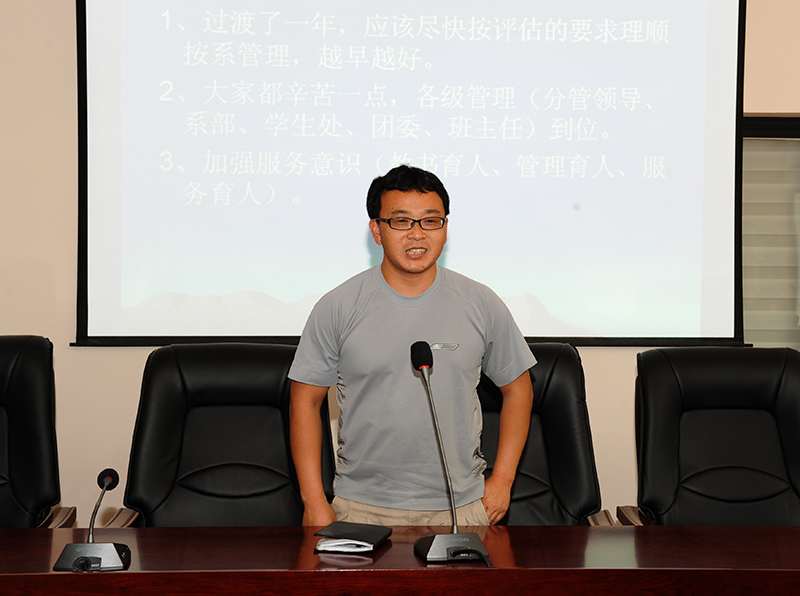 本次会议主要有七项议程:会议由前任学保处处长罗勇主持。一是由陶昌学院长对班主任工作总结交流会提出了目的和要求。二是由各年级班主任代表经验交流。三由是前任学保处副处长李如良对2015-2016年班主任管理工作进行总结。四是由李思泽书记对班主任工作取得的成绩给予充分的肯定,并提出今后班主任工作的要求。建议提出要求。五是全体到会人员针对大学生手册部分管理制度的内容进行研讨。六是由仲新副院长宣布学院2015-2016年对《班级社会治安综合治理》和《班级年度考核》结果并颁发奖励。七是由仲新副院长、罗勇,刘宁飞处长对班主任工作总结交流会进行了总结。