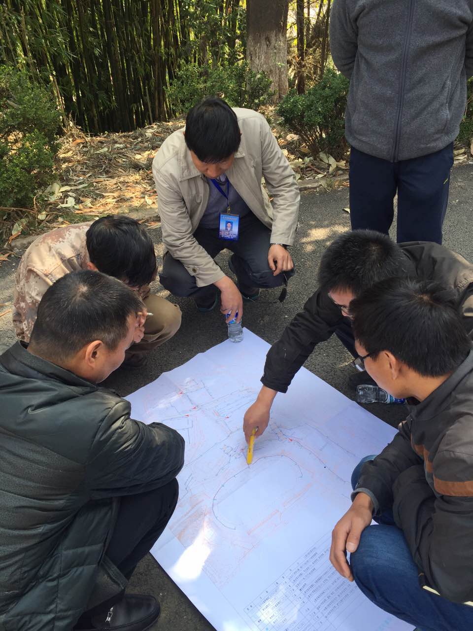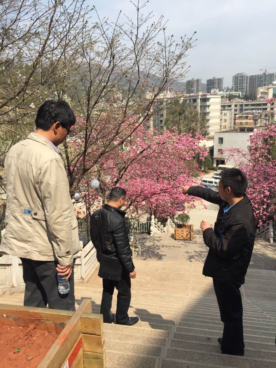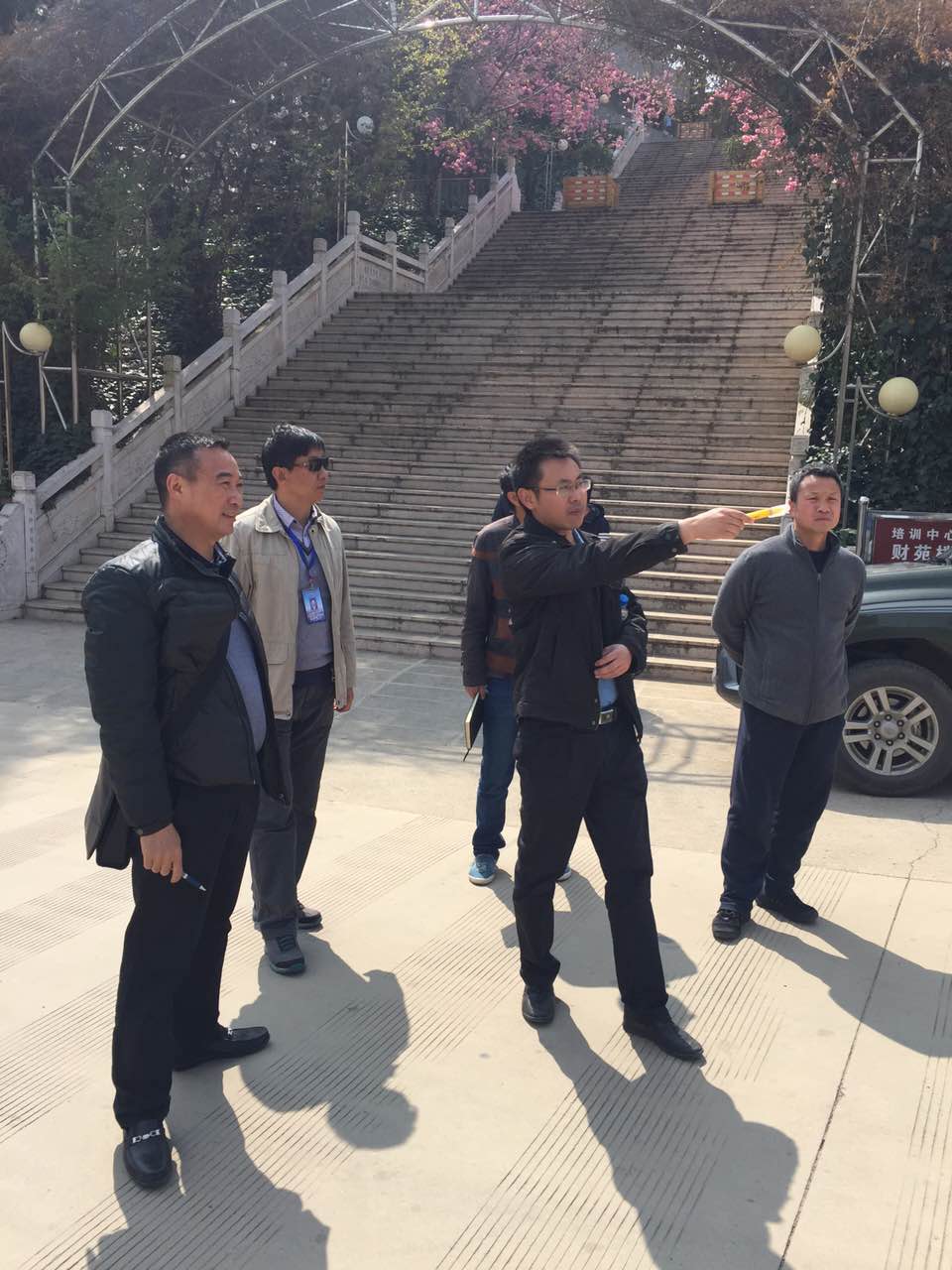 2016年3月10日,云南财经职业学院学生处的罗勇处长和基建处的李兆元处长,与相关的负责人员协同勘察校园路灯及监控系统项目施工现场。
