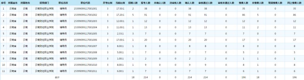 云南财经职业学院2020年事业单位第二批公开招聘工作人员报名情况统计(截止9月29日24:00)
