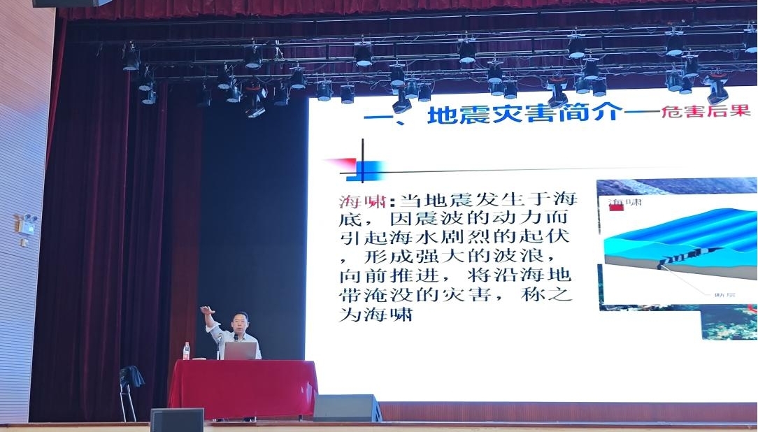 讲座分为两个阶段,第一阶段为地震灾害事故紧急避险常识,谭老师从地震灾害简介和地震灾害紧急避险常识两个方面出发,延伸出地震产生原因、地震次生灾害、目前我国地震预测预警现状、逃生原则、逃生姿势、互救原则等知识。通过详实的图文视频资料,为全校师生普及了一系列灾害逃生技巧和注意事项。让大家对防震减灾有了更深入的了解,对地震后如何自救互救有了更科学系统的认识,有效提高了师生防震避险、自救互救和应急处置能力。
