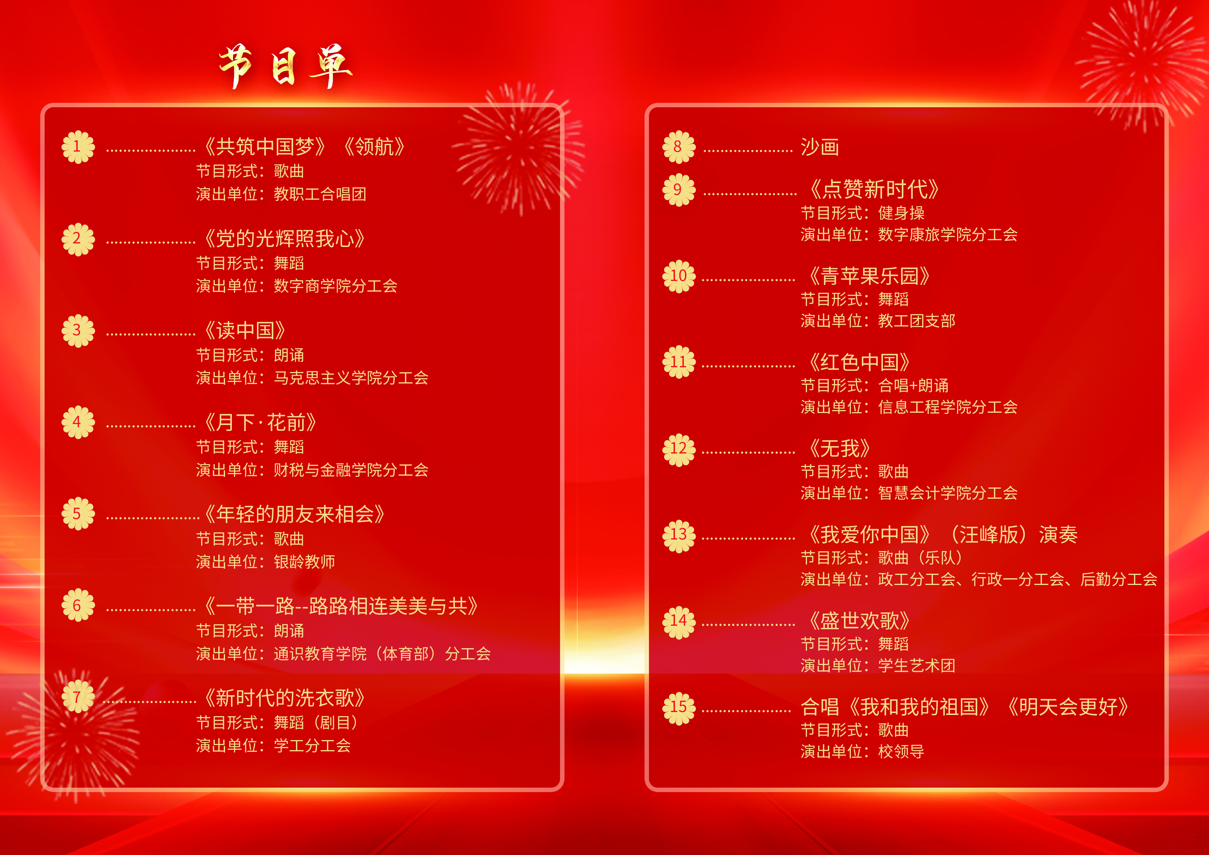 晚会不仅为师生们带来了一场视听盛宴,更是一次深刻的爱国主义教育。通过丰富多彩的节目,激发了师生的爱国热情,增强了他们的民族自豪感和使命感。同时,也为新同学、新教职工提供了一个展示自我的平台,让他们更好地融入到财职院的大家庭。