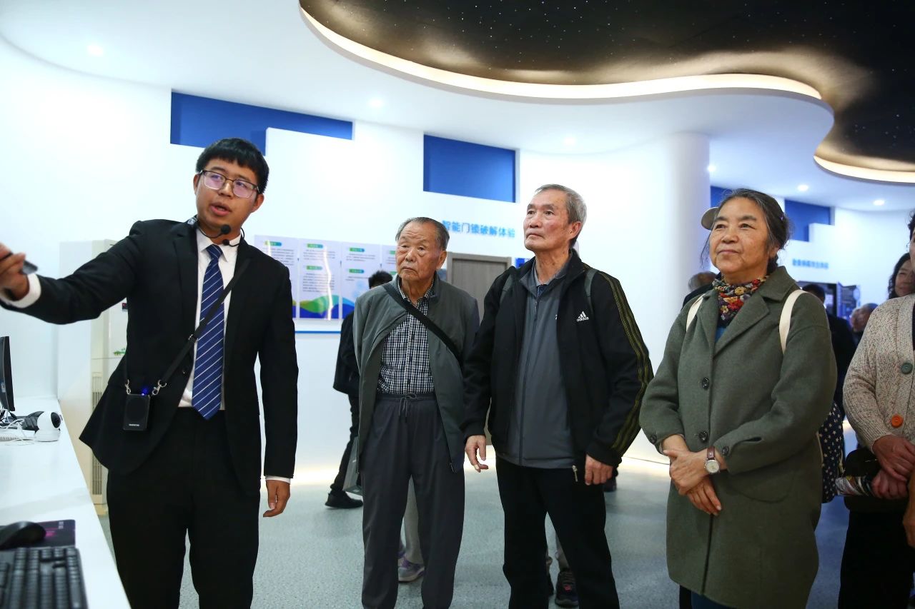 活动分为两个阶段进行。第一阶段,退休老教师们在学校领导、退休办、青年志愿者同学的热情陪同下参观了学校的数字新商科虚拟仿真实训基地和图书馆、校史馆。在数字新商科虚拟仿真实训基地,老教师们亲身感受到了科技与教育的深度融合。先进的设备、逼真的模拟场景,让他们对学校紧跟时代步伐、积极探索创新的教学模式赞叹不已。随后,老教师们来到校史馆,这里承载着学校的历史与记忆。一幅幅珍贵的照片、一件件充满故事的实物,仿佛把他们带回到了过去的岁月。他们回忆着自己曾经在校园里的点点滴滴,为学校的发展变迁感到由衷的自豪。一位退休多年的老教授深情地说:“看到美丽校园的变化,我感到无比兴奋与高兴。为现任的领导班子付出的辛劳表示深深地敬意。”