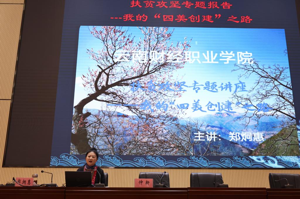 郑炯惠老师为我们分享了她从2018年3月自愿报名参加并受学校党委委派到云南省迪庆藏族自治州维西傈僳族自治县康普乡普乐村驻村扶贫工作的种种经历和事迹,以及她在扶贫过程中的收获等,这对云财职的老师和同学都有深刻的指导意义。