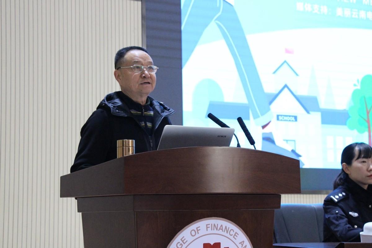 省关工委何飞副秘书长宣布:“五老”关爱下一代工程系列公益宣讲活动之“绿美校园 平安共治 校园安全行”云南财经职业学院系列活动正式启动。