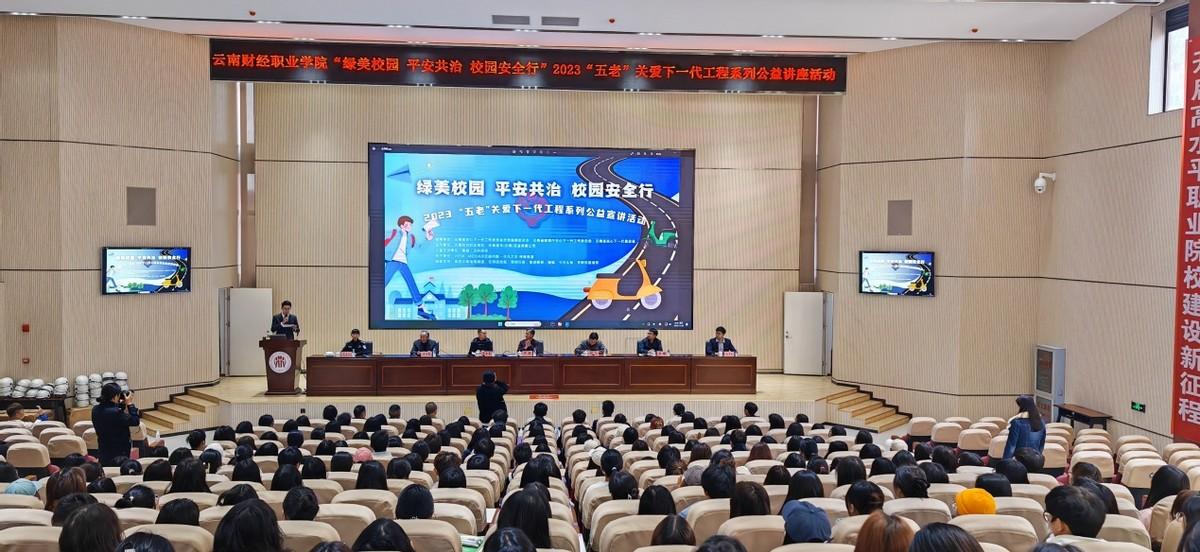 2023年11月29日,由云南省关心下一代工作委员会思想道德委员会、云南省教育厅关心下一代工作委员会、云南省关心下一代基金会作为指导单位,“绿美校园 平安共治 校园安全行”公益宣传系列活动启动仪式在云南财经职业学院铭德楼报告厅圆满举行。