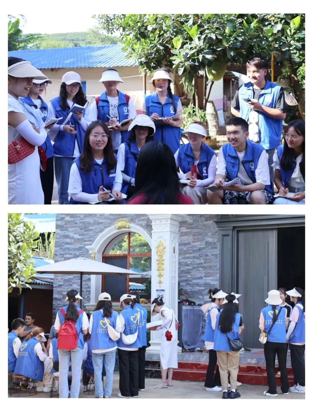 采访中,“现代化边境幸福村建设实践团”分成了两支主题不同的小分队开展调研活动。其中,“党建引领基层治理,建设现代化边境幸福村”参与团的10名同学了解了班幸社区基层治理中的各种惠民政策,如免费为百姓发放菠萝蜜树苗、发展第三产业、垃圾收集处理等。“笃行计划,边境民族团结文旅宣传”助力团的另外10名同学围绕德昂族的语言服饰、传统节日、特色文旅等内容进行了体验了解。两支小分队通过入户走访调研,感受到了基层治理工作的复杂与艰辛,也感受到了民族团结对当地发展的助力。加强基层治理,提高政府服务能力和效率,是实现边境幸福、民族团结、和谐发展的基础。
