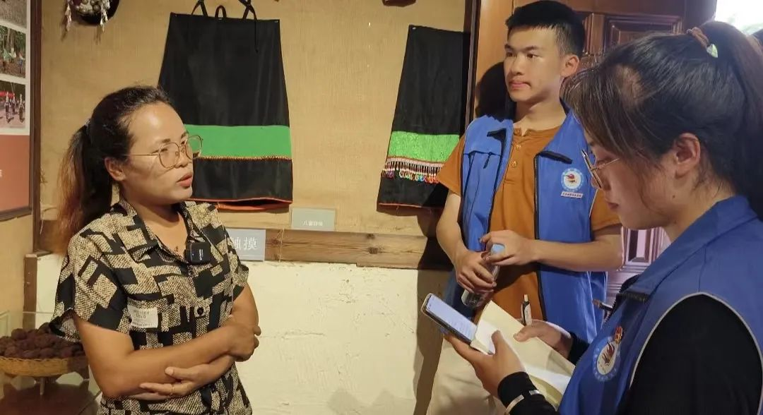 德昂族谱,千年历史沧桑秀;民族风采,百代智慧璀璨辉。随后由班幸社区党总支副书记李玉珍向我们讲解了有关德昂族的历史源远及民风民情。我们了解到德昂族先民为古代濮人族群,与佤、布朗等民族同为百濮中的一支。随时代发展及民族文化相传,德昂族保留着许多民族节庆、乐器、服饰、风俗等。如:蔑口弦、葫芦丝、乐谱、象脚鼓等特有乐器;展示了富含蕴意的特色民族服饰及民族饰品等。