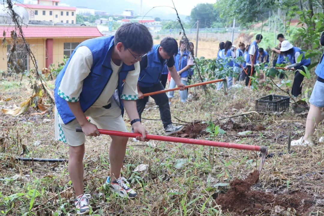 7月28日上午,“现代化边境幸福村建设实践团”来到了耿马县孟定镇班幸社区居民委员会,在我校驻班幸社区工作的老师丁维国、潘国平和班幸社区党支部书记、主任张庆的带领下我们开展了植树活动。此次活动共种植40棵果树,有三丫果、梨、荔枝、沃柑、百香果、龙眼6种。我们通过老师们的讲解,了解到种植果树有挖坑、施肥、填土、浇水、盖膜、覆土6个步骤,大家虽然汗流浃背,但亲手种植的过程培养了大家的毅力和团队合作精神,收获良多。希望每棵小苗都可以茁壮成长,等到明年社会实践活动时,我们会再来看这些“财职希望树”。