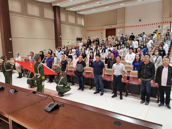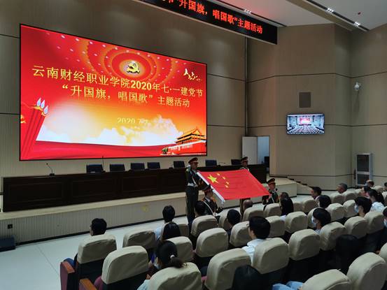为庆祝中国共产党成立99周年,回顾党的奋斗历史和光辉业绩,继承和发扬党的光荣传统和优良作风,7月1日,我校在8号教学楼报告厅庆祝建党99周年升国旗唱国歌主题教育活动,学校领导、教师代表及全体学生会成员参加了此次活动。