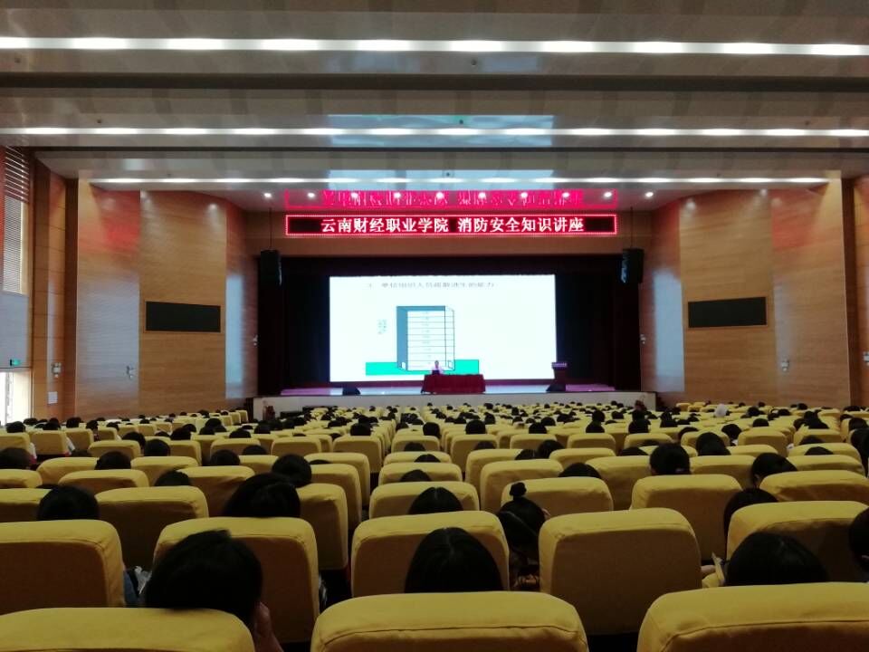 9月20日下午,云南财经职业学院在学校大礼堂召开了“珍爱生命,安全第一”的消防知识讲座,学校相关领导和部分教职工与广大学生参与此次活动。今天,学校有幸邀请到了昆明市消防员王海清教官向我们全方面阐述了火灾发生的原因及如何自救等相关知识。
