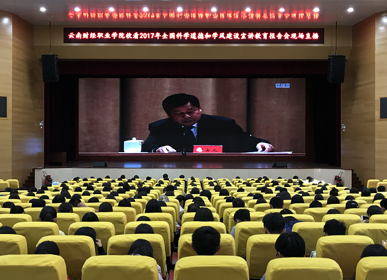 2017年11月14日,我们有幸来到大礼堂来收看2017年全国科学道德和学风建设宣讲教育报告会现场直播,开头我们便迎来了杜占元的开幕词,并怀着激动的心情全体起立奏唱了国歌。出席报告会的有校领导、老师和16、17级的同学。报告会邀请了万刚副主席李院士邱勇院士等人作精彩报告。