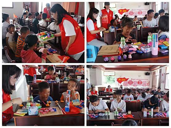 下午来到了东回镇龙泉湖社区,干净整洁的社区环境让人有一种走到了小康社区的感觉。为了异地搬迁儿童、农村留守儿童,建有学习园地、交流平台、娱乐场所和健身阵地,上海黄浦区妇联向澜沧捐建在三所童蕊儿童之家,其中一个就在龙泉湖社区。此次队员们来到龙泉湖社区带领留守儿童一起学党史、做游戏,为他们送去温暖和关怀。首先由带队老师张苗苗进行开场发言,由会计学院团总支副书记孙瑞婕给在座的孩子们讲述党史小故事,队员们教大家唱了《我和我的祖国》并分发慰问的小礼物,除了各种生活日用品、零食还有很多彩泥。队员们带领孩子们发挥各自想象用彩泥制作了很多可爱的动物和植物。此次来到活动现场的很多小朋友基本都是留守儿童,有5岁姐姐牵着2岁的弟弟、乖巧懂事的3岁弟弟、6岁独自跟奶奶守家的妹妹……腼腆又真切的一句句“谢谢”,看到队员们时眼里的光亮甚至憨态可掬的宝宝也萌萌的比划着喜欢,看着孩子们脸上的笑容,队员们心都要融化了,那么纯真的笑容,那么真挚的感情,那么简单的愿望,想把快乐延续得更久一些,想尽可能得实现他们的愿望,队员们都不想结束活动,也不想离开,不善表达的小朋友也带着泪光揪着队员衣服问:“能不能不要走?这些都给你。”无奈最后还是带着浓浓不舍与小朋友们分别,实践队员只是参与到孩子们生命中微不足道的一瞬间,但是尽自己的绵薄的努力,让孩子们感受到爱、感受到温暖和幸福,希望他们在今后的日子里健康快乐,茁壮成长。