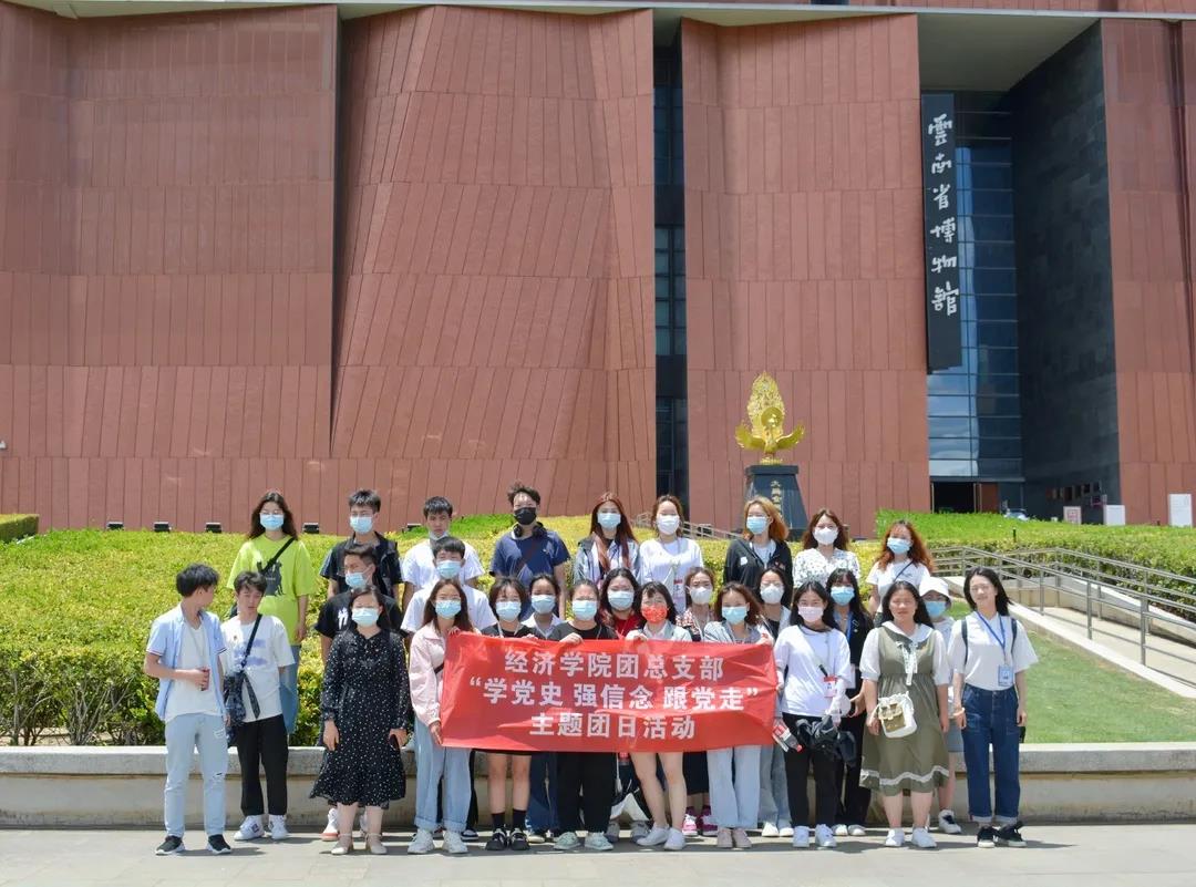 云南财经职业学院部分青马工程学员、经济学院团总支部落实中央、省委、省教育工委关于开展“学党史、强信念、跟党走”学习教育工作的部署和要求,根据《共青团云南财经职业学员委员会关于在全校团组织开展“学党史、强信念、跟党走”学习教育的通知》的要求,由校团委李佳蓉老师、经济学院团总支书记潘桂苹老师带队,于2021年5月13日下午组织青年团员参观云南省博物馆,旨在促进“青马工程”学员对社会的了解,推进基层团支部党史学习教育,将课堂和实践教育相结合,树立正确的历史观、人生观、价值观。所有学员从学校乘坐大巴前往博物馆,在馆内由讲解员带领参观或自行参观。