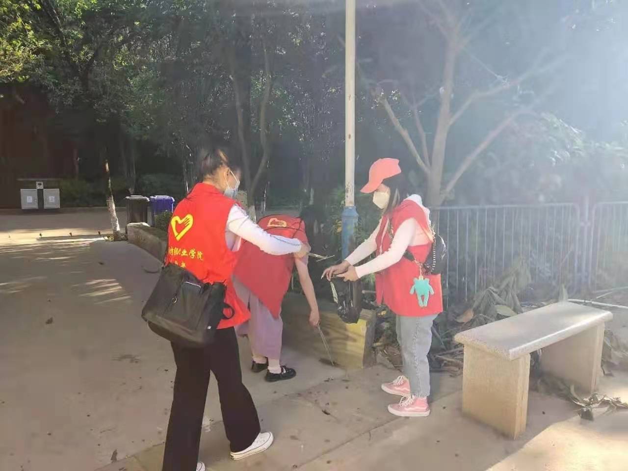 志愿者们在月牙塘公园以实践活动的方式,耐心细致地讲解了爱国卫生运动的重要性。身穿红色志愿者服装的他们手拿垃圾袋、垃圾钳等卫生工具,奔波在公园的每一个角落,清理了很多不容易被人发现的垃圾。志愿者们不怕苦、不怕累,认真努力地清扫草丛、树林、池塘以及路边花丛中的垃圾。