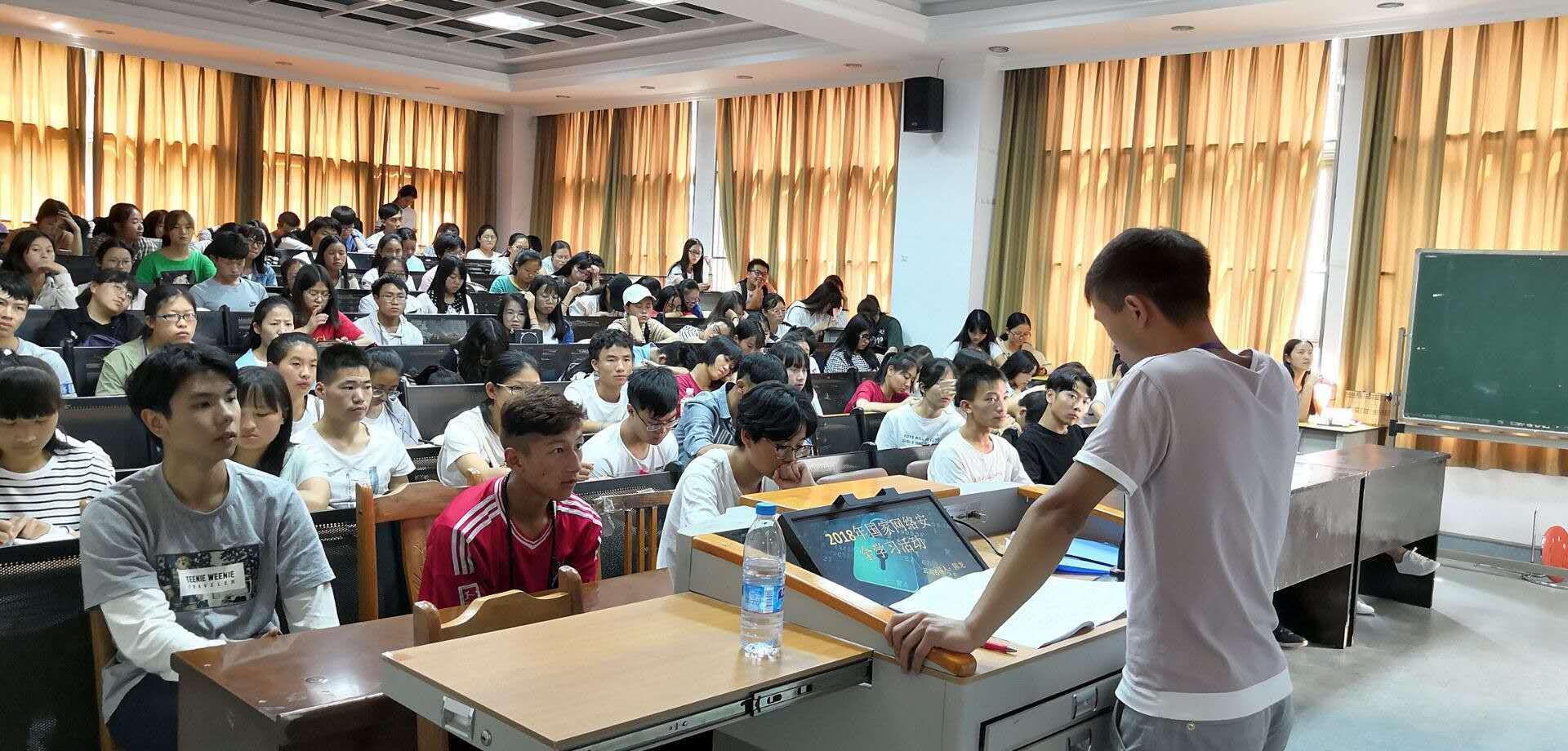 为认真贯彻落实习近平总书记在全国网络安全和信息化工作会议上的讲话精神,在全省广大青少年中广泛宣传网络安全工作取得的重大成就,大力普及《中华人民共和国网络安全法》及相关配套法律法规,不断强化网络安全意识,努力提升基本防护技能的要求。云南财经职业学院于2018年9月21日在训导楼多媒体教室掀起了“国家网络安全学习”的热潮,本次国家网络安全学习活动由陈龙主持。