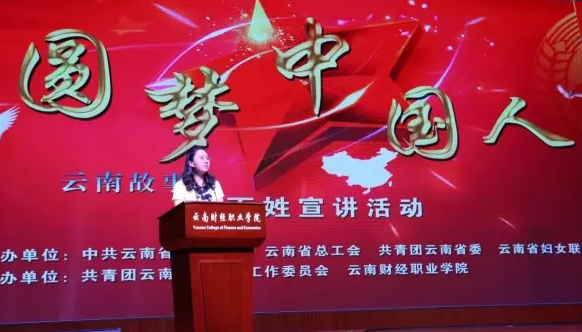 为深入开展“砥砺奋进的五年”主题宣传教育活动,积极引导省直机关广大团员青年紧密团结在以习近平同志为核心的党中央周围,以良好的精神风貌迎接党的十九大胜利召开,根据省委宣传部、省总工会、团省委、省妇联《关于组织开展“圆梦中国人”百姓宣讲活动的通知》(云联发[2017]21号)文件精神,省直机关团工委和青年联合会于2017年9月6日在我校顺利举办“喜迎十九大 圆梦中国人”宣讲活动。