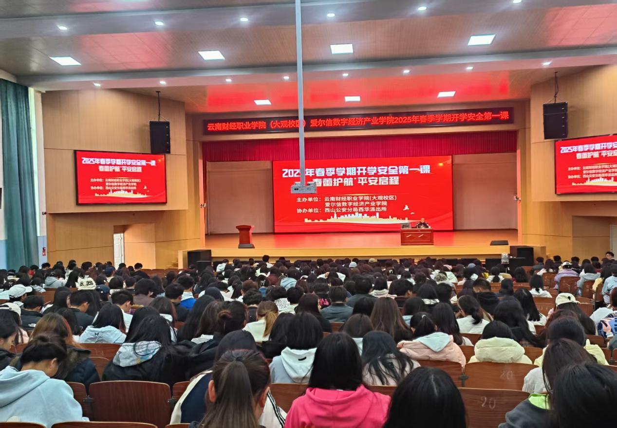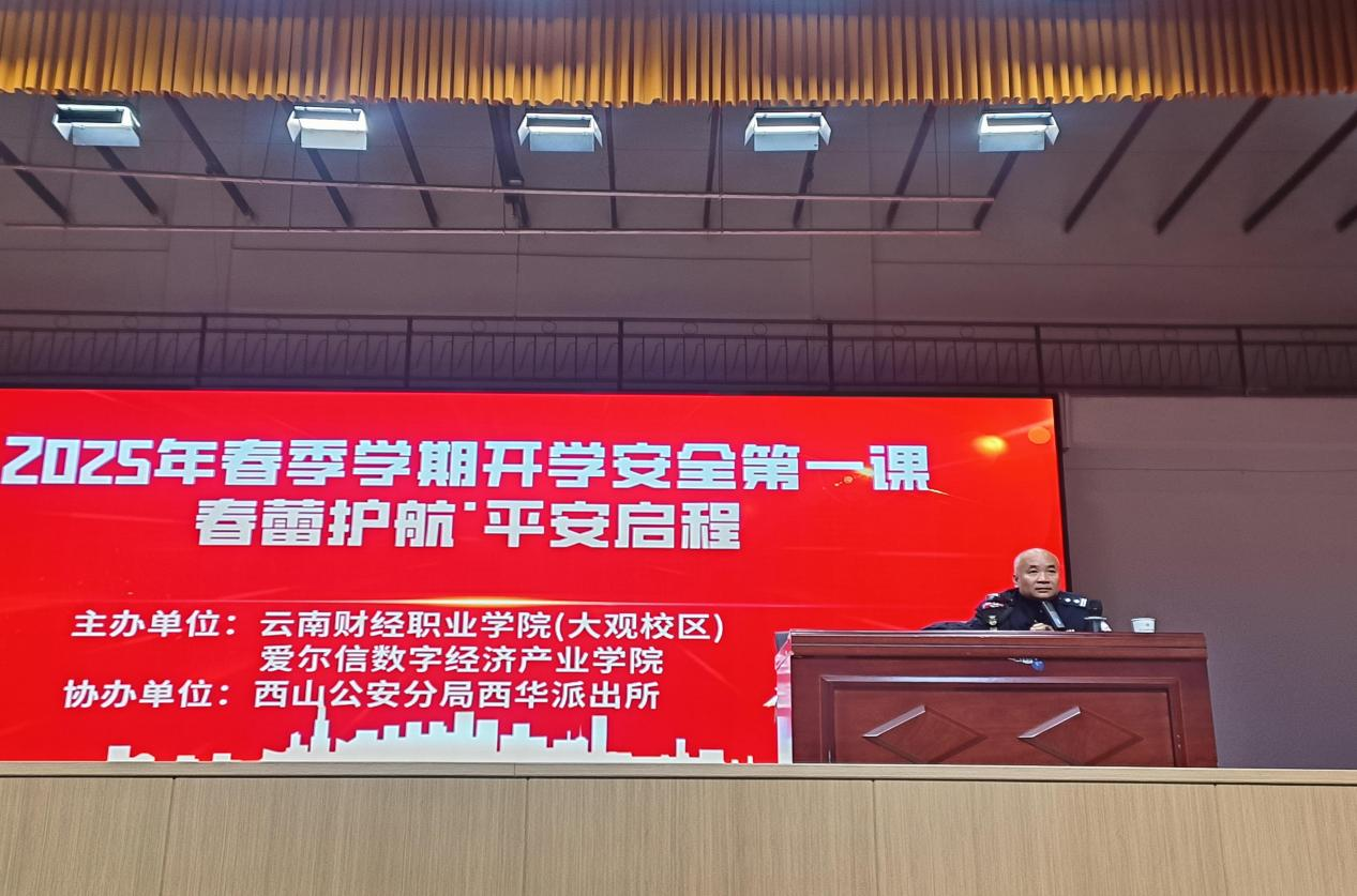 为进一步提升同学们的安全意识,云南财经职业学院(大观校区)邀请西华派出所警官于2025年3月6日,在大礼堂开展了“春蕾护航·平安启程”安全主题讲座。旨在普及安全知识,增强安全意识,提升应急处理能力。