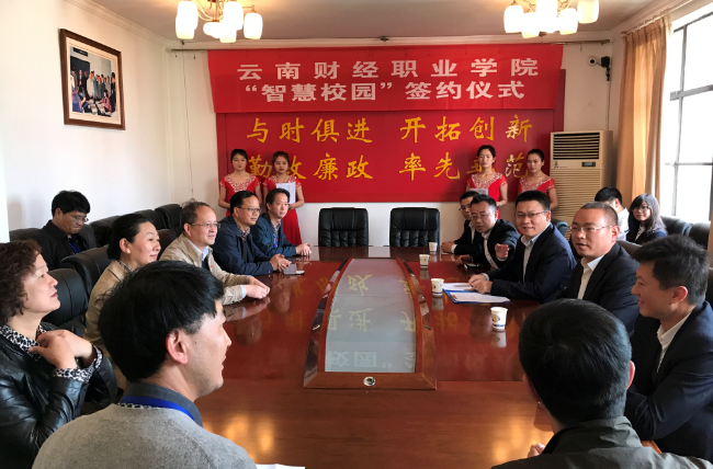 学院为建设“智慧校园”与中国联合网络通信有限公司昆明市分公司及中国移动盘龙分公司经过多次对商讨、磋商,最终2017年2月27日经学院党政联席会议正式决定由中国联合网络通信有限公司昆明市分公司建设我院“智慧校园”项目。双方本着互惠互利、共同发展的原则,经过多次对合作协议的商讨、修订,并经双方律师审阅,云南财经职业学院“智慧校园”合作协议正式确定,双方将对我院校园宽带网络和校园一卡通业务进行深入合作。
