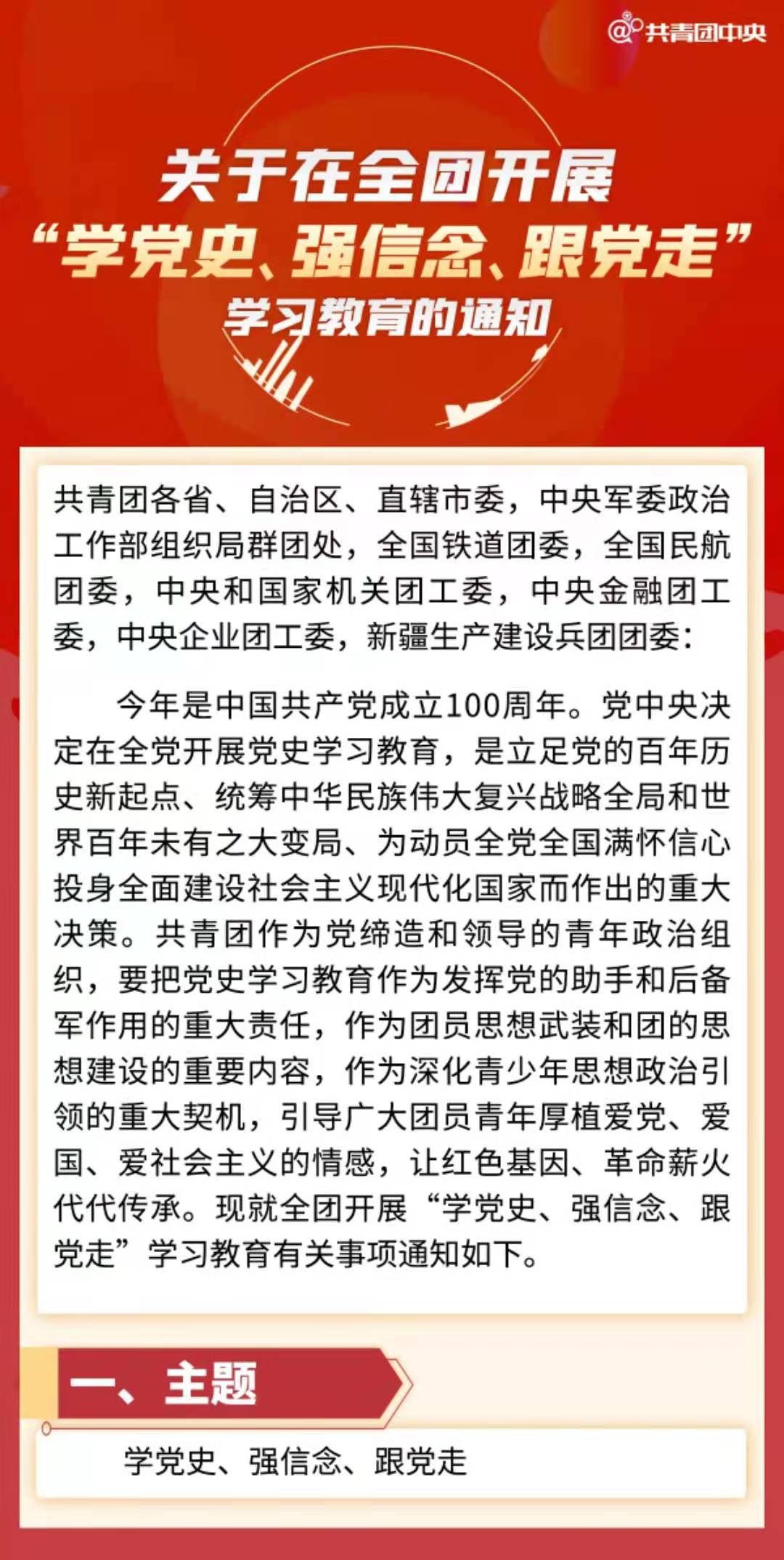 共青团中央关于在全团开展“学党史、强信念、跟党走”学习教育的通知