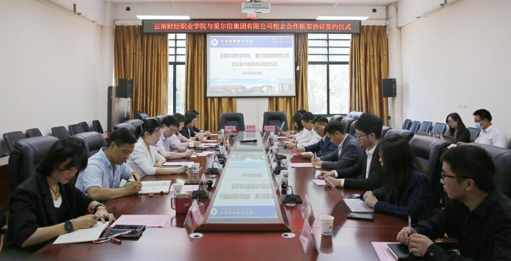 6月30日上午,我校与爱尔信集团有限公司举行校企合作框架协议签约仪式。党委书记张金甫,党委副书记、校长邹丽,副校长沈豫琼、严黄一仪,爱尔信集团董事长毛良、执行总裁余强、副总裁毛建友等出席签约仪式。
