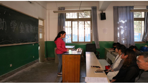 在颁发仪式上,尹湘萍老师、杨雯婷老师及在场的全体同学首先向曾浩老师表示祝贺,祝贺曾浩老师获得“云岭名师”称号,从同学们的掌声中听到同学们对曾浩老师由衷的感谢以及崇高的敬意。本次助学金获得代表上台发言,表示同学们今后会更加努力读书,励志成才,回报社会,不辜负老师、家长及学校对自己的期望。