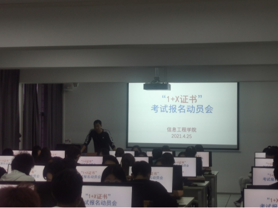 2019年起,教育部实施1+X证书制度,将学历证书和职业技能等级证书结合起来,旨在深化复合型技术技能人才培养培训模式和评价模式改革,提高人才培养质量。信息工程学院于2020年申报了四个“1+X”职业技能等级证书,并逐步开始组织学生学习并报名参加考试。