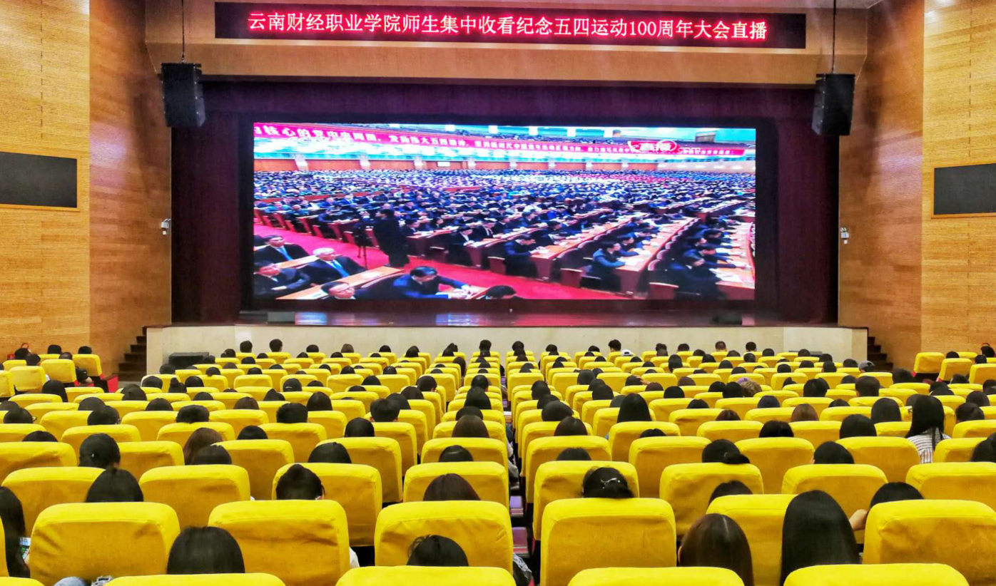 4月30日上午10:30分,学院组织全校师生收看纪念五四运动100周年大会的直播(部分老师和学生在礼堂收看,部分在教室内通过电子屏收看)。大会上习近平总书记发表了重要讲话,深切怀缅了五四先驱崇高的爱国情怀和革命精神,高度评价了五四运动的历史意义,深情寄语青年要树立远大理想、要热爱伟大祖国、要担当时代责任、要勇于砥砺奋斗、要练就过硬本领、要锤炼品德修养。