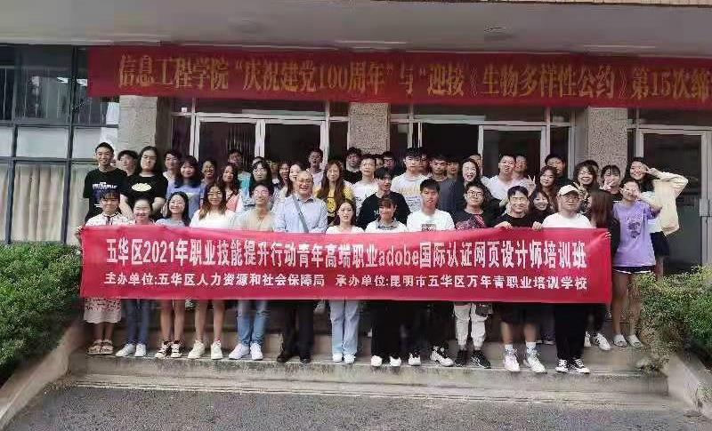 2021年6月23日至7月13日,信息工程学院响应云南省人社厅、财政厅关于青年高端职业技能人才培养的通知要求,与昆明市五华区万年青职业培训学校达成合作,开展青年高端职业培训之网页设计师培训班。