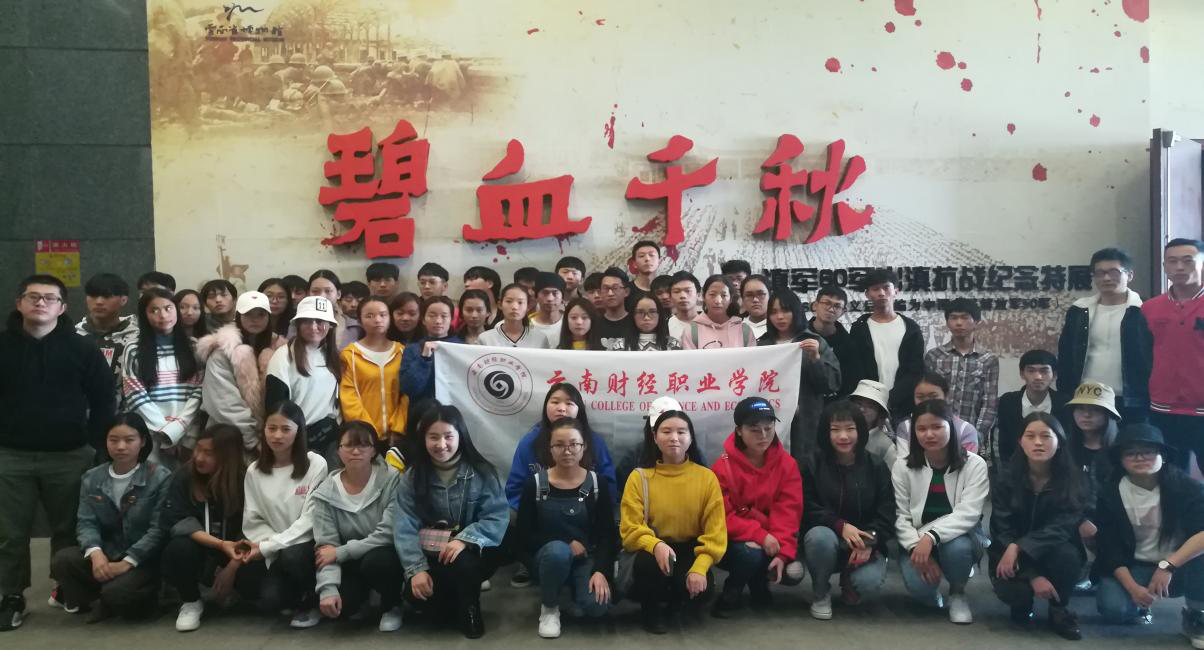 为弘扬爱国精神,增强爱国情怀,2018年11月29日中午12:30,云南省财经职业学院信息工程系全体数字媒体专业同学在系主任苏峥嵘老师、系书记郁军及系部杨冉、岳洋、李章超老师的带领下,到云南省博物馆参观“碧血千秋”----滇军60军出滇抗战纪念特展。