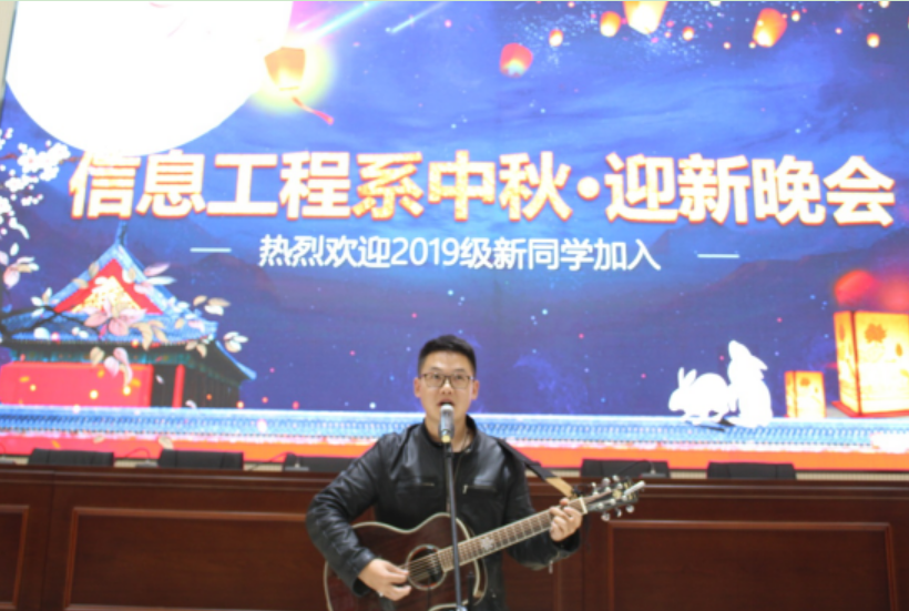 段天雄老师吉他弹唱《为你唱首歌》,拉开了信息工程系中秋迎新晚会的大幕。