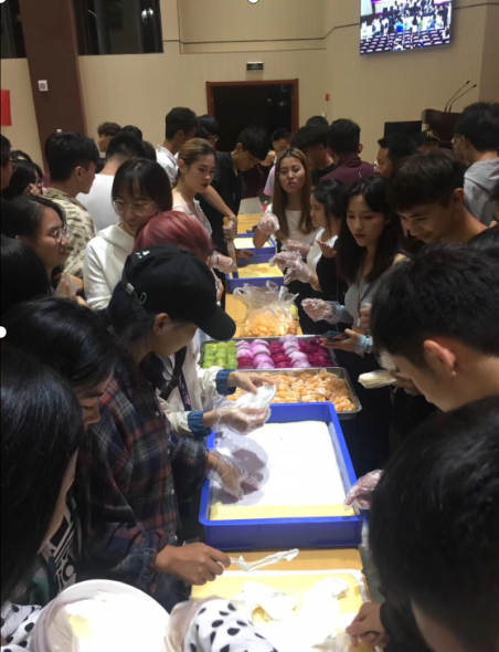 晚会后半段,系主任带领大家一起做蛋糕、切蛋糕 ,其中欢声笑语不断,这是信息工程系大家庭第一次意义上的互动,同时也让同学们感受到学校的温暖。