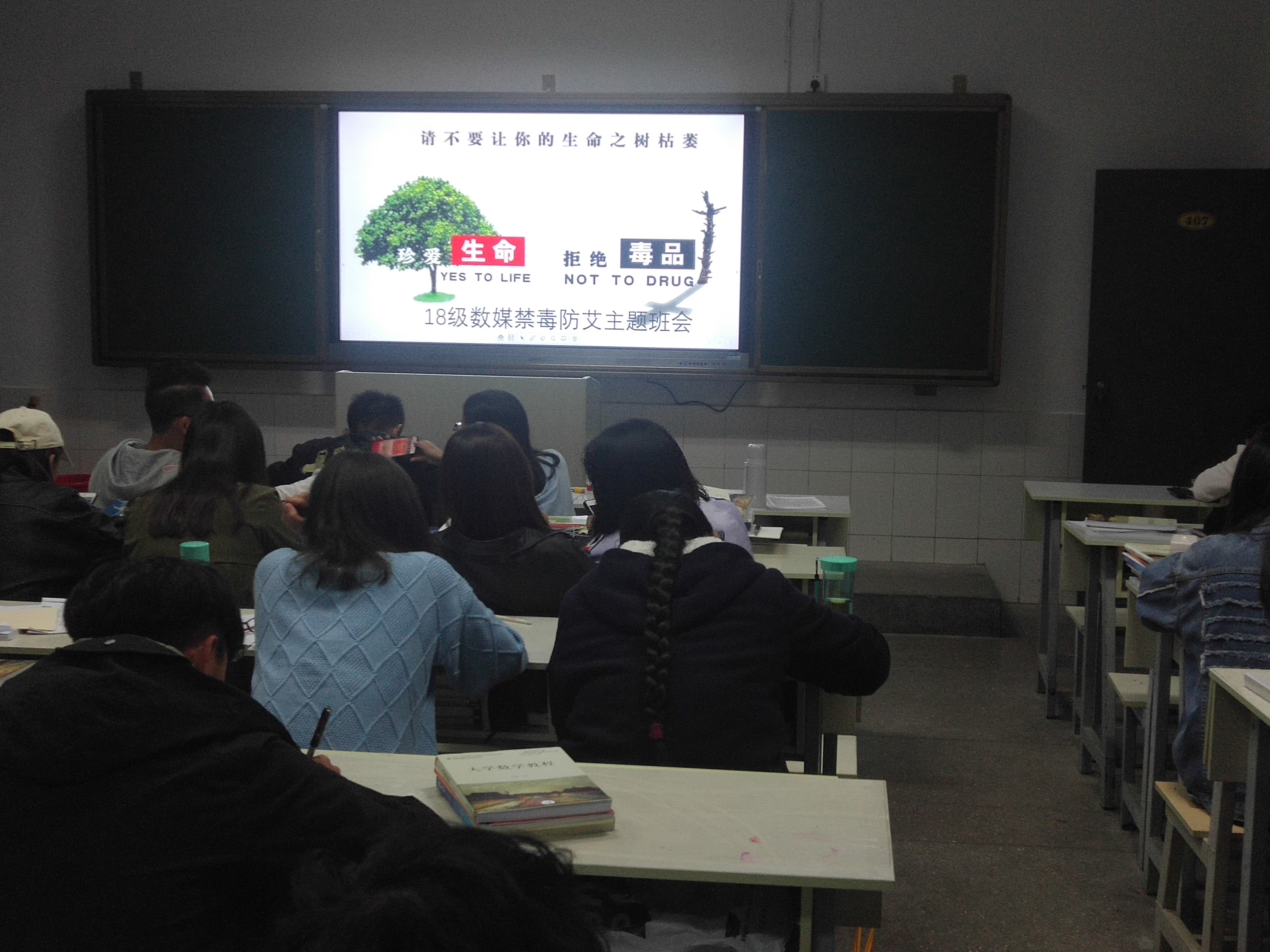 主题班会之前,系部布置同学登录中国禁毒网参观网上展览馆,学习相关知识,之后各班进行主题班会,班会后要求学生关注两个微信公众号“中国禁毒”和“云南防艾”,完成注册、学习以及在线考试,知识竞赛等,以巩固大家的学校效果。