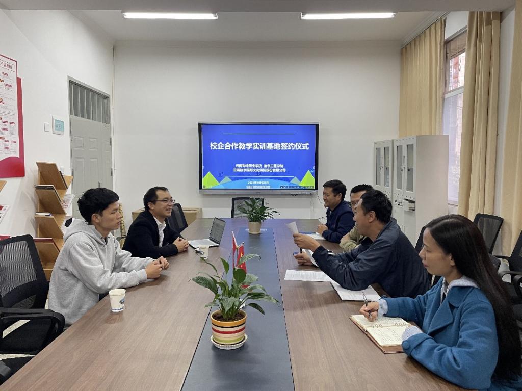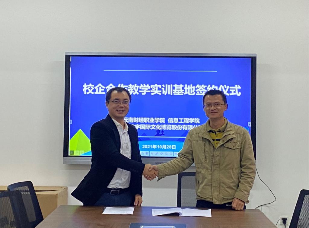 为了深入落实产教融合、校企合作育人,促进学院人才培养与实习、就业岗位相衔接,2021年1028日下午,信息工程学院与云南骏宇国际文化博览股份有限公司在学校敬德楼208会议室举行校企合作洽谈及教学实训基地签约仪式,云南骏宇国际文化博览股份有限公司董事会秘书张志明与信息工程学院院长钟明江、书记黎乾坤、副院长常云刚、副书记郁军以及辅导员杨珍共同参加了签约仪式。