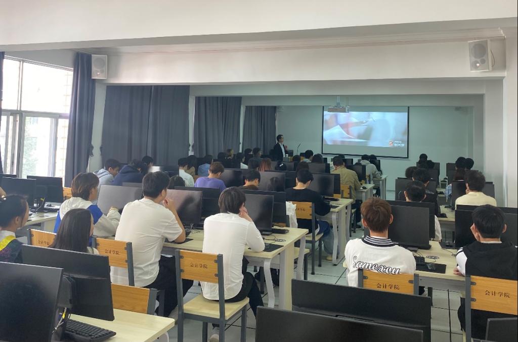 签约仪式结束后,云南骏宇国际文化博览股份有限公司董事会秘书张志明在敬德楼301教室,针对2022届数字媒体技术专业全体毕业生召开了专场宣讲会,介绍了公司情况、发展前景和招聘岗位、薪酬福利等等,并回答了同学关于公司的晋升机制、员工福利、实习规定等方面的疑问。(图/文:杨珍)