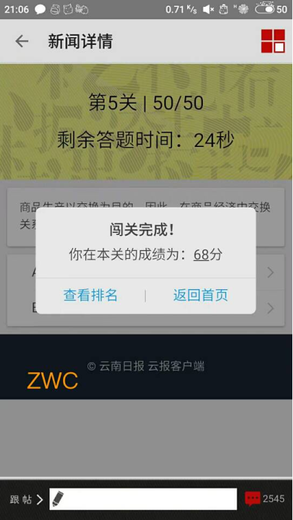 4月29日24时,第七届云南省高校文化节之“中华优秀文化”知识竞赛选拔赛圆满落下帷幕。短短十天里,全省72所高校大学生中有1711062人次通过云报党政新闻客户端参加竞赛,有11711人次到达第五关,有6618人次通关,我系2016级计算机应用技术班的周文超同学就是达到第五关的“万分之一”。