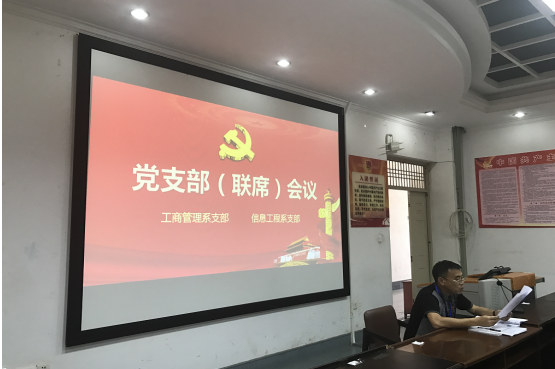 6月8号下午信息工程系党支部联合工商管理系党支部在训导楼2楼会议室举行组织生活会议。