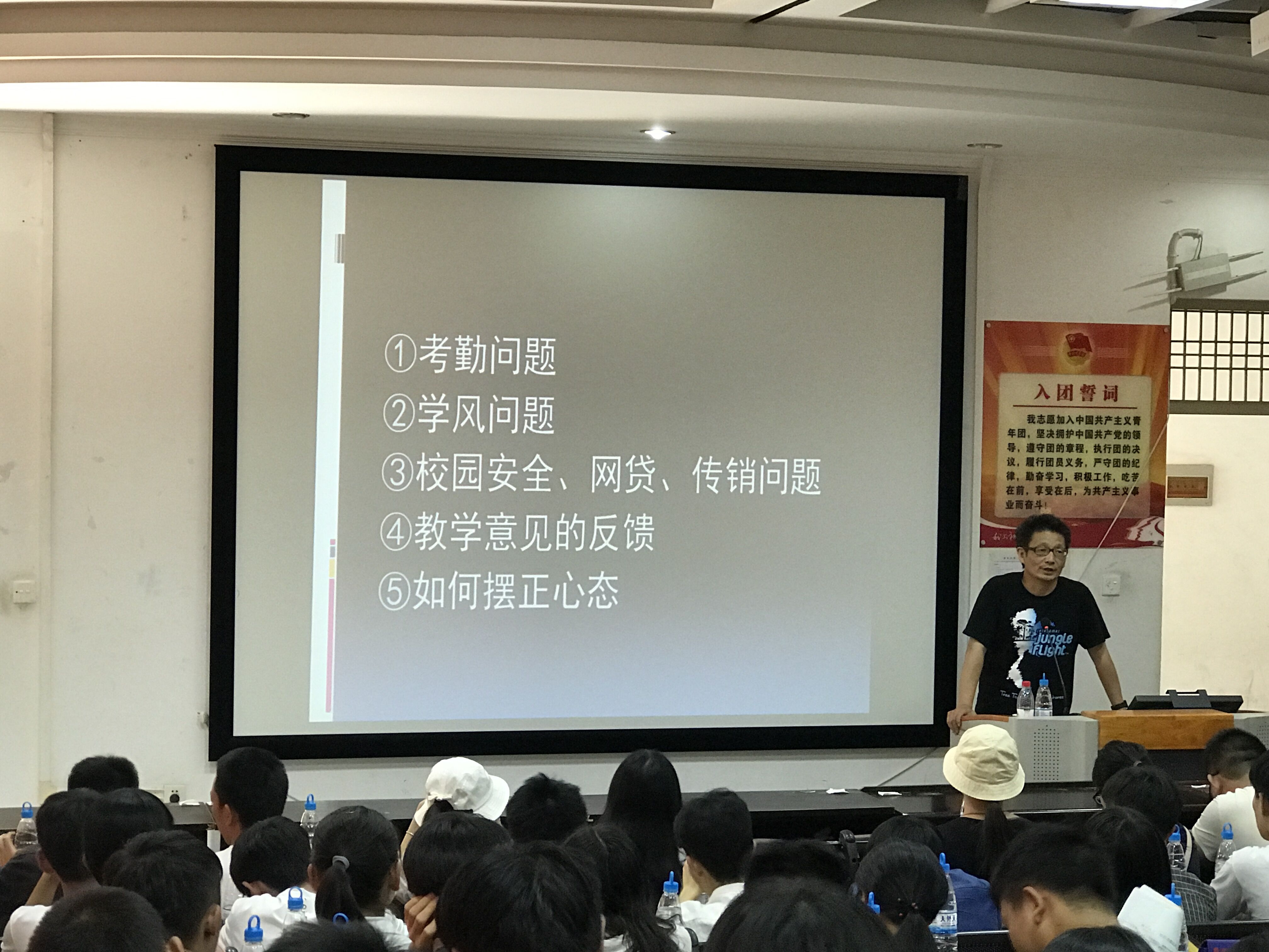 会议最后,苏主任针对同学们现阶段的心态问题进行剖析,在同学相处过程中的矛盾、对学校的看法和意见、课堂教与学中出现的问题等方面给同学们进行了解释、说明和正确引导,让同学们摆正心态,充分认识到自己的责任、定位!