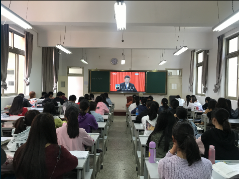 学院于5月4日10:00组织了全校师生收看了直播(部分老师和学生在礼堂收看,任课老师、班主任和其余学生在教室收看)。
