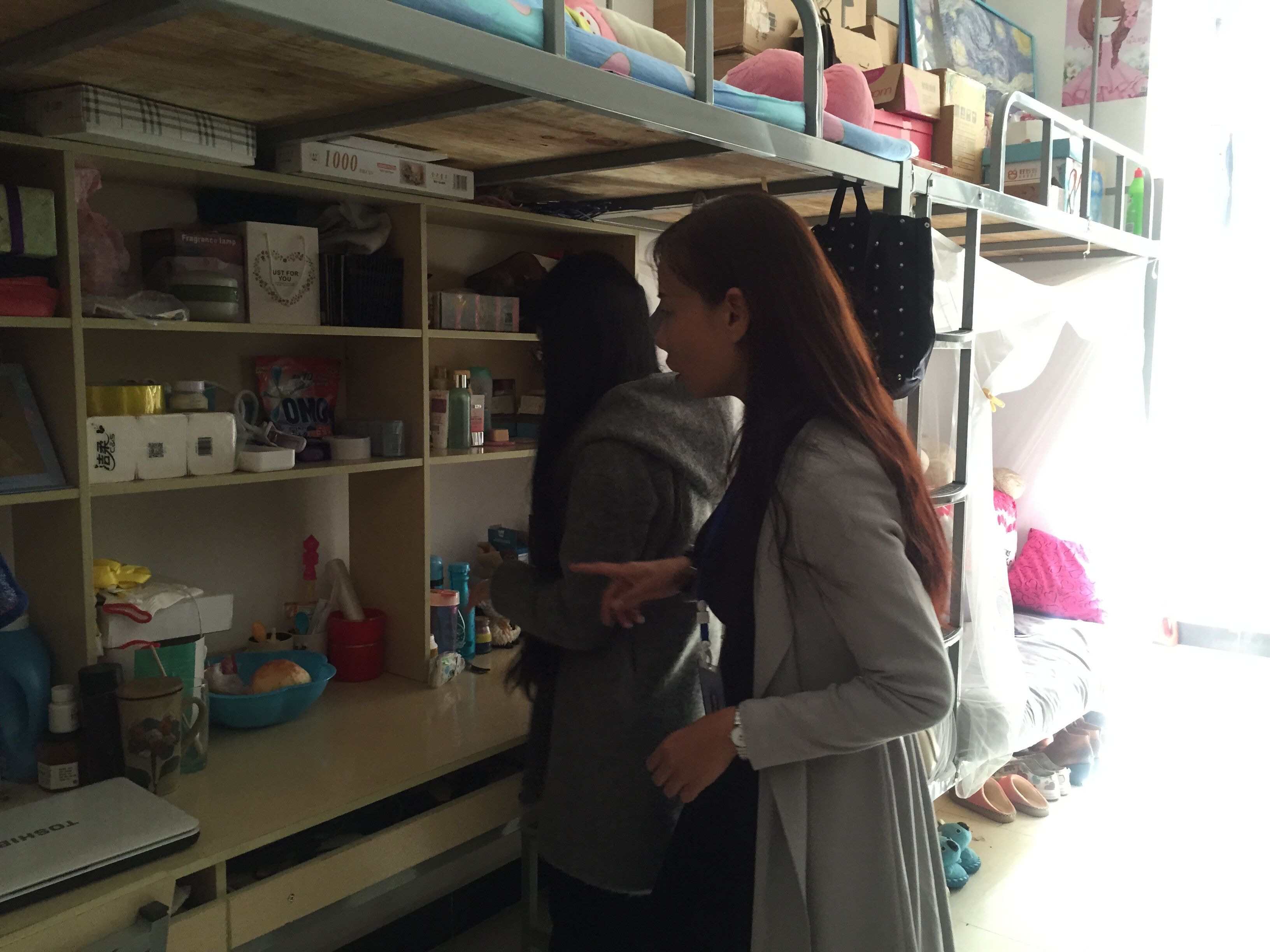 信息工程系辅导员吕倩老师也到各间宿舍与同学们交流,为同学们更好地建设自己的宿舍文化做好充分的前期准备工作。
