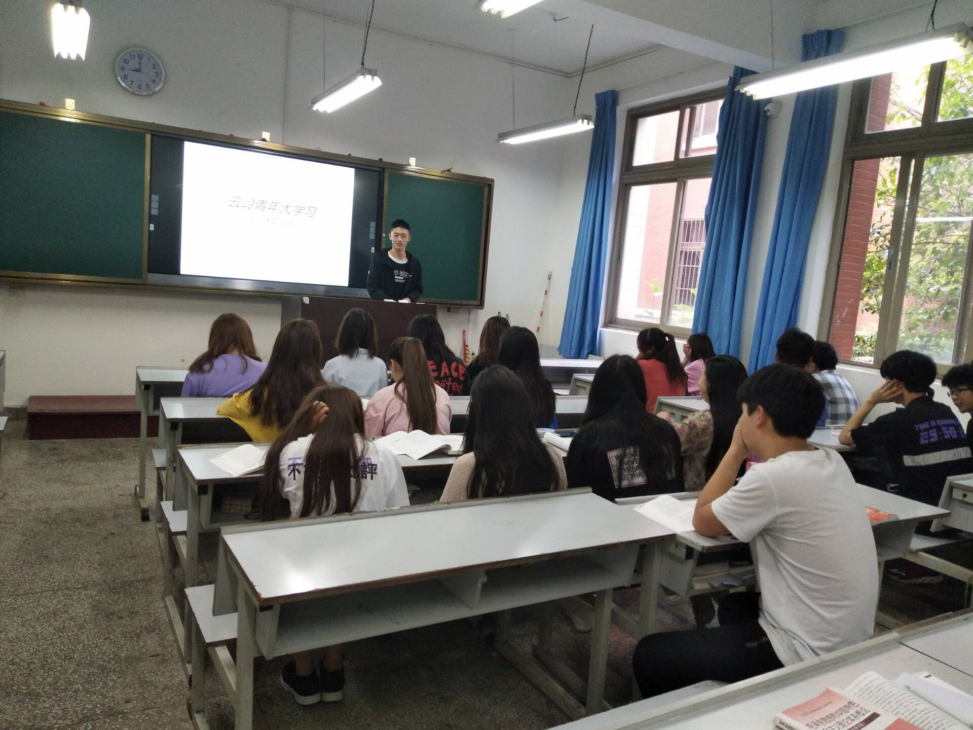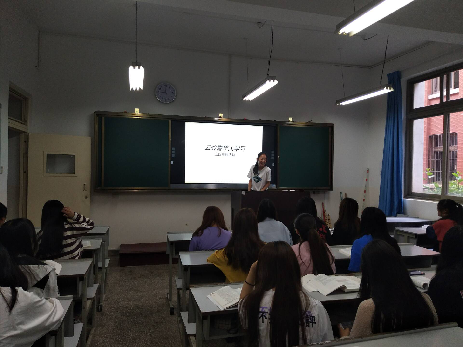 1、首先,班长介绍五四运动的相关背景,并且摘读了习近平五四谈话的部分内容并提出开展团日活动的主题。